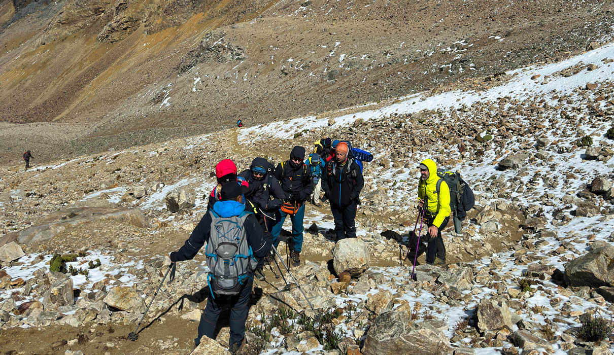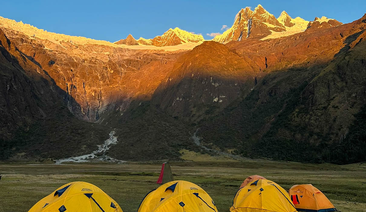 - Travesía por terreno alpino con vistas abiertas de nevados y glaciares. Descenso controlado hacia el campamento de Jancarurish.